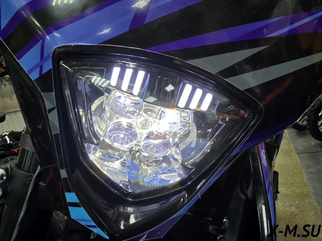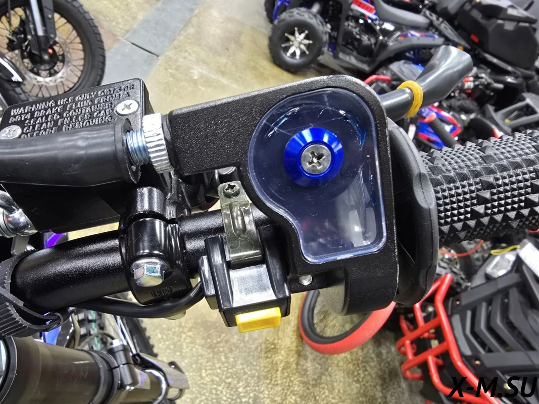 Многофункциональная приборная панель со спидометром, тахометром, одометром, индикатором передач и заряда батареи. Влагозащитные разъемы подключения приборной панели, блоков управления и кнопок старт/стоп.