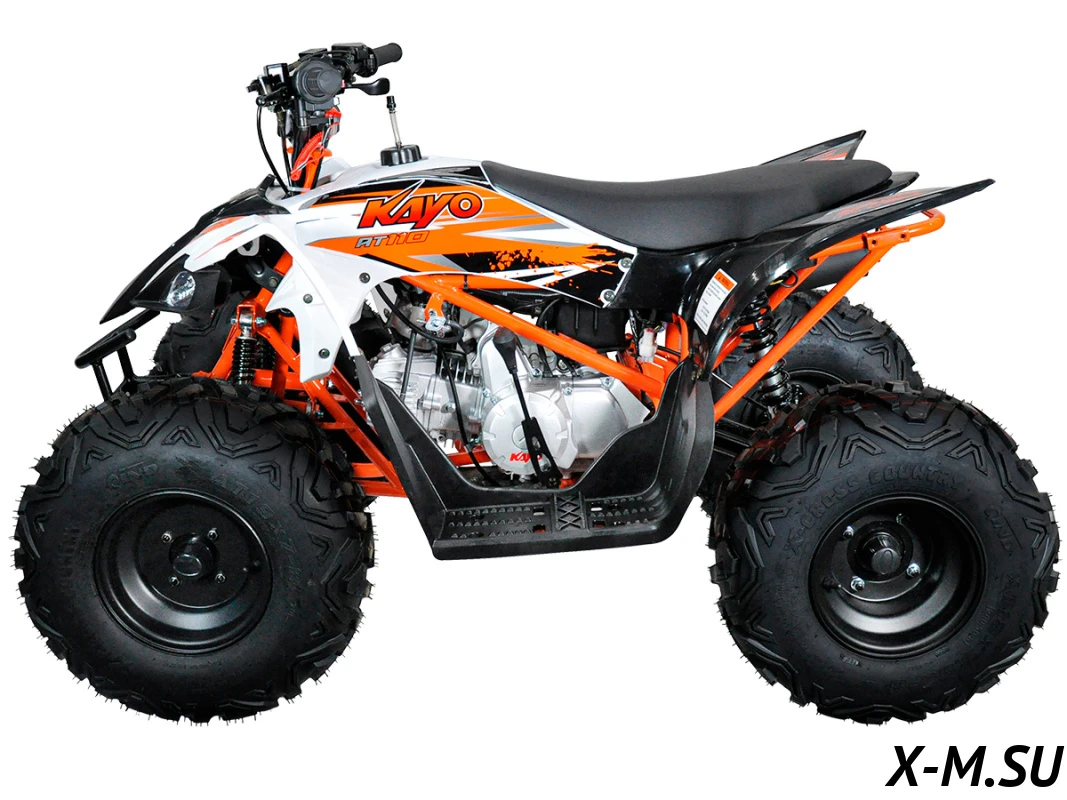 Квадрицикл KAYO AT110 – выносливая модель для освоения спортивной езды по бездорожью или помощи в хозяйстве. Хорошо подходит для детей и подростков, интересующихся поездками за пределами проторенных троп. Также подойдёт и для бытовых задач, а наличие ПТС позволяет использовать AT110 на дорогах общего пользования.